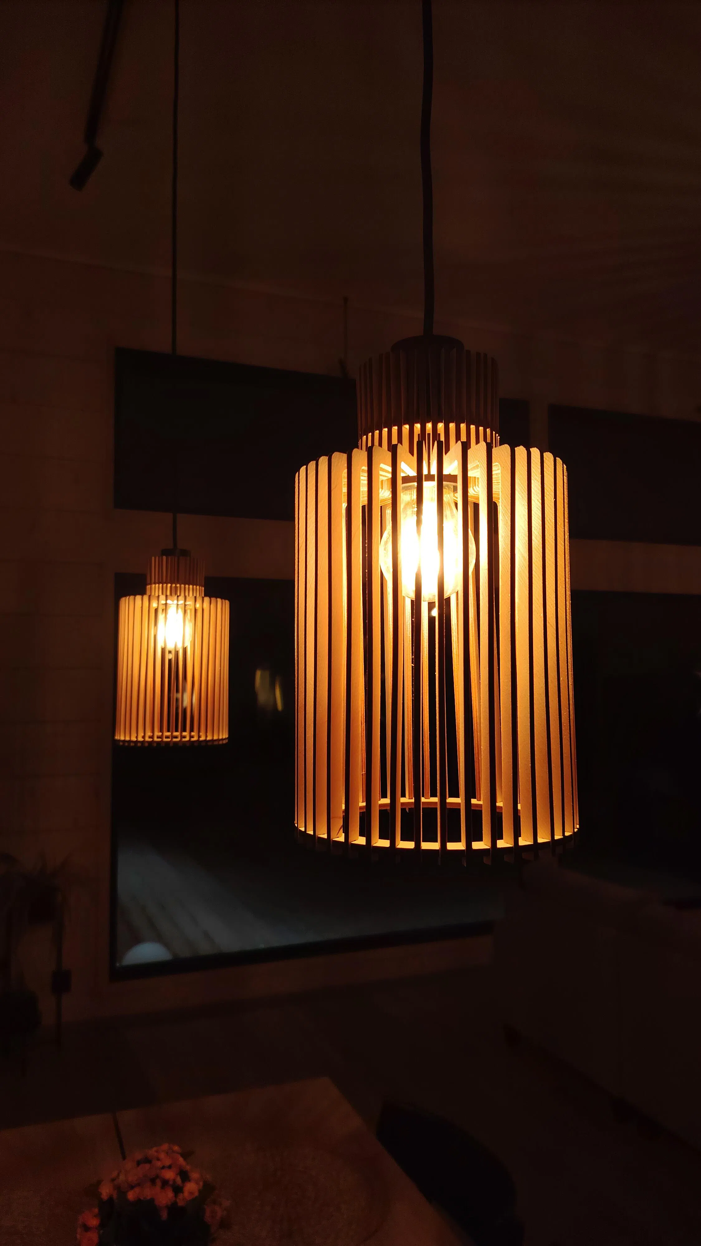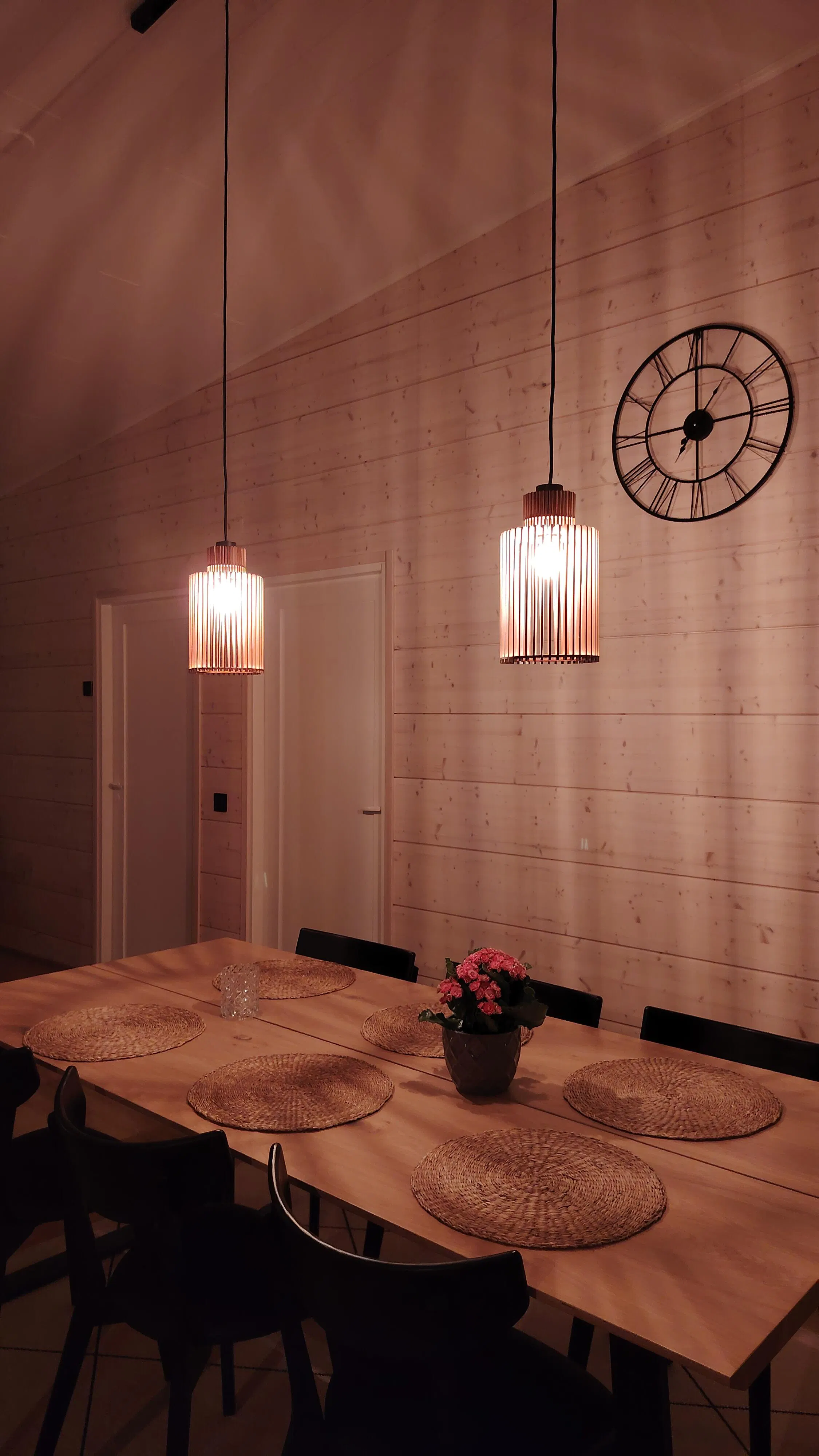 NILS 300 lamp shade design is available in three different finishes - natural wood, black and brown. Regardless of finish color, all lamp shade designs will feature slats with brown edges.